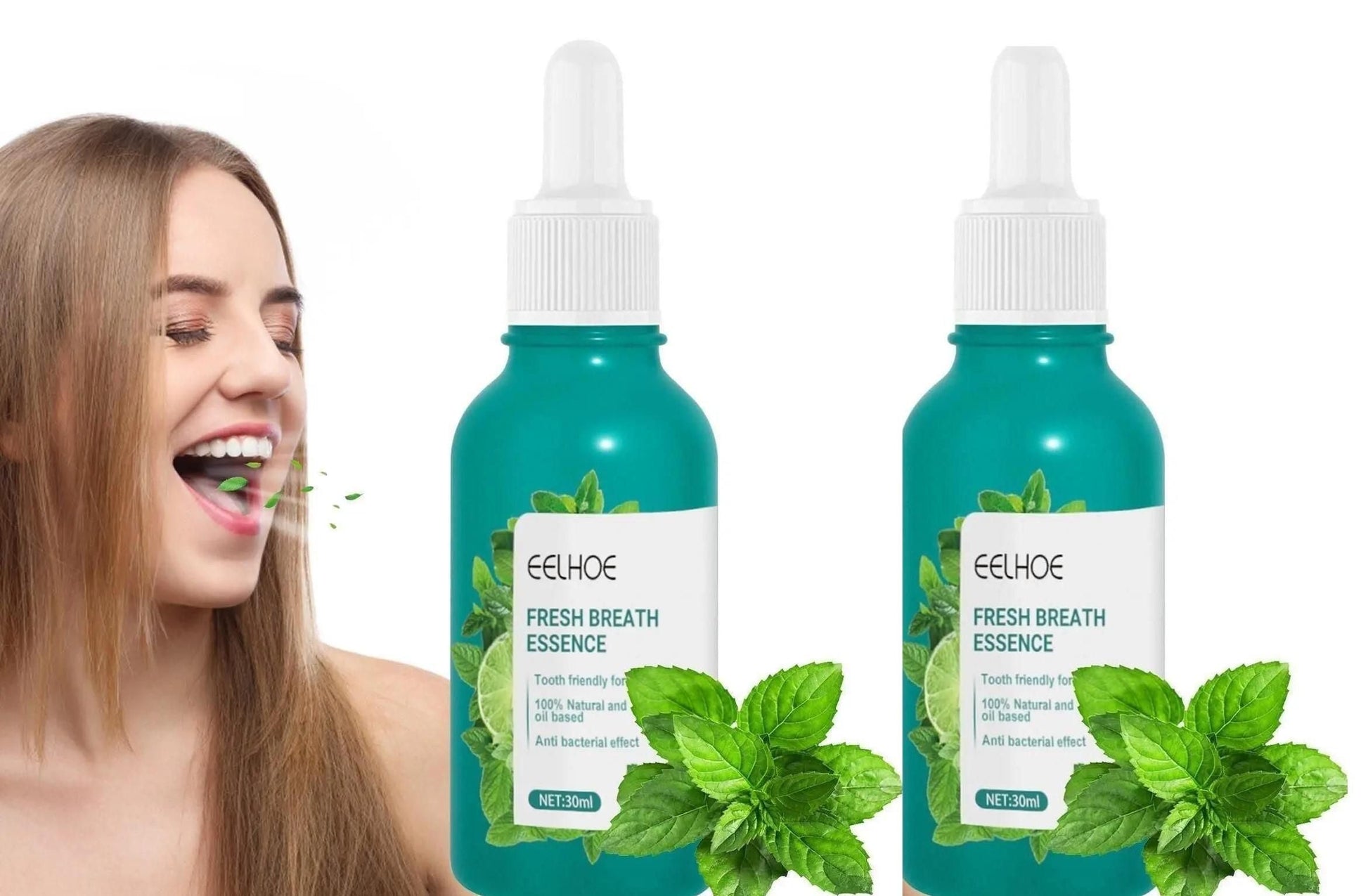 Product Name: Fresh Breath Essence Breath Care Drop 30ml (Pack of 2) Package Contains: It has 2 Pack of Fresh Breath Essence Composition: Peppermint Extract Product Quantity: 30ml Form: Liquid Combo: Pack of 2 Ideal for: Men & Women Weight: 300